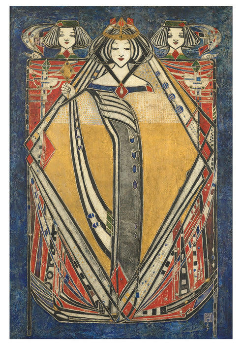 20 blank notecards (5 each of 4 designs) with envelopes in a decorative box and printed on recycled paper. The art of Margaret Macdonald Mackintosh (Scottish, 1865–1933) is rooted in symbolism and Celtic imagery, and influenced by the Arts & Crafts movement. Among her best-known works are the gessoed panels created for Hous’hill, the Glasgow residence her husband, Charles Rennie Mackintosh, designed for art patron Catherine Cranston. The Four Queens, representing the four card suits, originally graced the walls of the Hous’hill card room and are now in the collection of the Virginia Museum of Fine Arts.