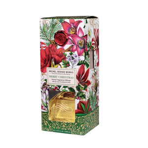 Our diffuser includes eight reeds and an elegant glass decanter, packaged separately inside our custom-made box. Scent of holly and winter florals with touches of carnation, rain, bamboo, and palm leaves.