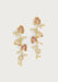Featuring 18k gold dipped brass accented with hand set crystals, the sculpts of the earrings are as delicate as they are intricate. The stems each have multiple hinges, allowing the crystal pavé flowers in a combination of fuchsia and pale pink crystal to swing and catch the light beautifully.