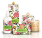 Our luscious Peony scented Gift Set features floral notes of peony and lily of the valley with hints of apple, amber, and peach. Included in the gift set is our triple-milled soap that is silky smooth and long lasting, and contains the finest pure palm oil, glycerin, and rich shea butter. Our hand and body lotion that is made with shea butter, aloe, and other botanical ingredients. And our all-natural, 100% soy wax candle that is nontoxic, biodegradable, and clean burning.