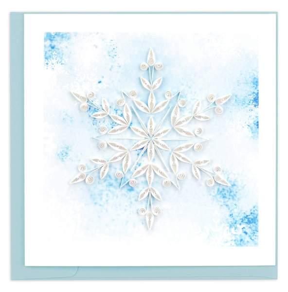 Description: Celebrate the unique characteristics of people and snowflakes alike with this beautifully quilled card. All of our cards come with a coordinating envelope, and a short history of quilling on the back of the card. Our square cards require extra postage.