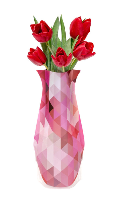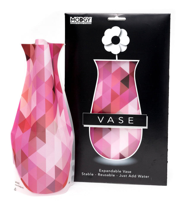 Modgy Expandable flower vases do everything a glass vase does except collect dust, chip or break. These BPA free plastic vases are durable and stable enough to hold a flower bouquet and are ideal for events, weddings, and any table top. Modgy vases are collapsible and economical, making it easy to keep a variety of colors and patterns tucked away for any occasion. To clean, rinse with water and dish soap. Leave open to dry, store flat.