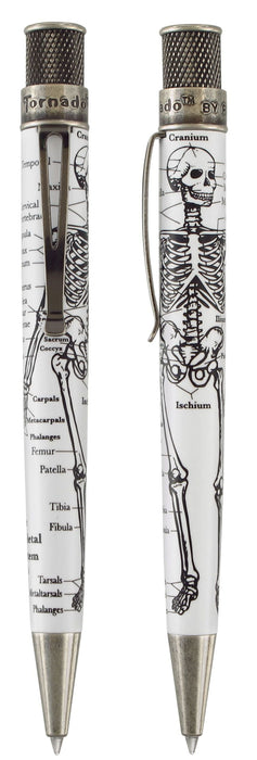Retro 51 Tornado Vintage Metalsmith rollerball pen, "Dr. Gray", an ode to Henry Gray, well known for his book on the human anatomy. The pen has a glow-in-the-dark lacquer finish barrel and an antique silver trim. The pen is fitted with a smooth flowing rollerball refill that is retracted with its patented knurl twist-top. Replace the rollerball with any readily available Parker-style ballpoint refill and your Tornado is now a ballpoint pen. Gift boxed (Retro 51 gift tube that also doubles as a pen stand). Retro 51 model number VRR-1346.