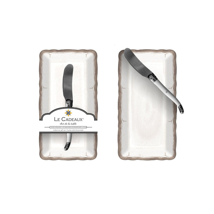 Rustica Antique White Butter Dish and Spreader Gift Set by Le Cadeaux