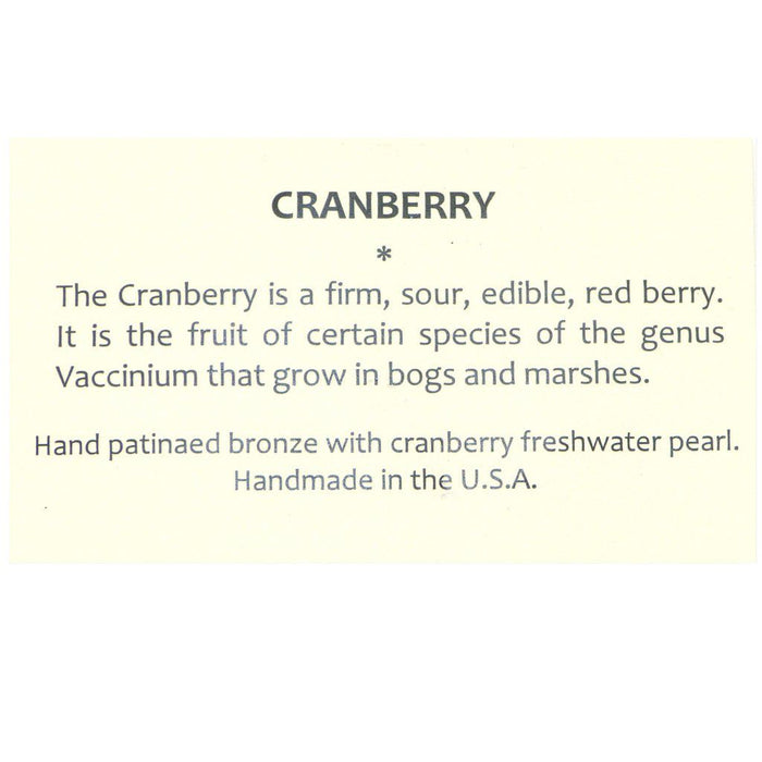 Cast in bronze directly from a cranberry bush and accented with freshwater pearl cranberries, these beautiful earrings are perfect for autumn and holiday gatherings or any Northeast (or Down East) gal proud to wear the local produce.