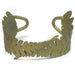 Approximately 2.5" wide, this bronze bracelet will fit most wrists up to 8" in circumference.
