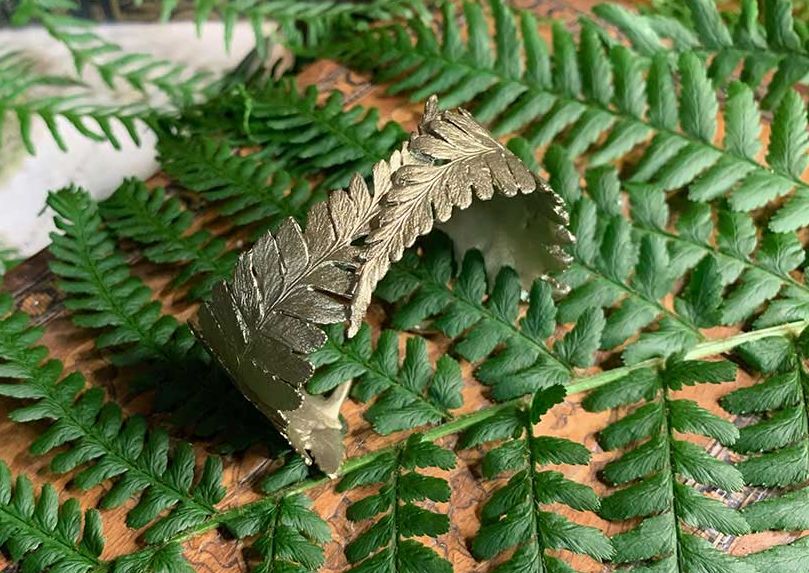 Cast in bronze directly from fern fronds and hand patinaed to a glowing matte green-bronze finish, this cuff bracelet speaks to the nature lover in us all.