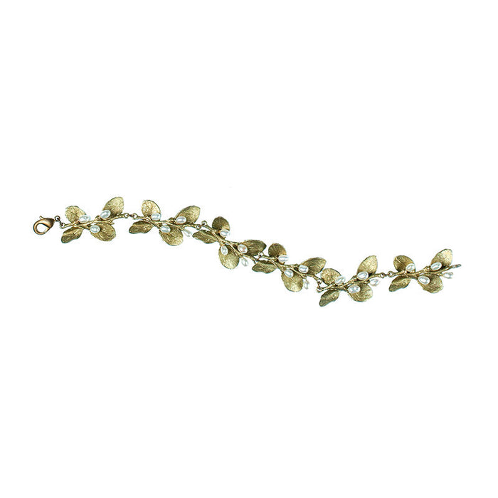 Michael Michaud's Silver Seasons collection began in 1991 with a handful of designs. Real greenery, flowers, fruits, vegetables, nuts, bark and herbs are copied and made into jewelry. The process for creating this natural looking jewelry begins with creating a true-to-life sculpture from a live plant, flower, leaf. Using the lost wax technique, Michael and his artisans create molds made from the sculpture. Bronze is poured into the mold. Then comes the careful hand application of fine details. Finally, metals are patinaed, smoothed, and sometimes set with natural stones or pearls. All to bring a beautiful, wearable piece of the garden! Michael became an expert at making and manipulating molds at the School for American Crafts at Rochester Institute of Technology. There are several design variations within each botanical collection that might include bracelets, earrings, necklaces and pins.