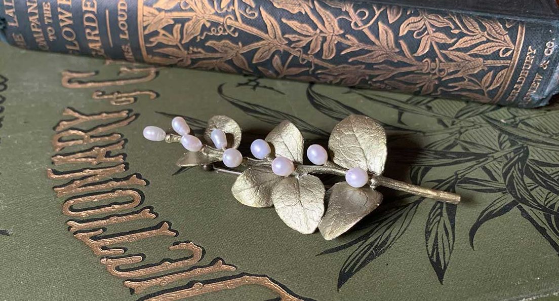 This brooch pin celebrates the Irish Blackthorn tree, a flowering tree native to Ireland that has magical powers in traditional folklore.