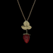Materials: The Strawberry Pendant is cast in hand patinated bronze and accented with a flame-worked red glass berry.