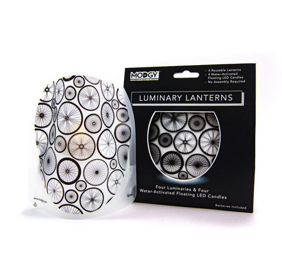 Modgy Luminary Lanterns set the mood in any space with the addition of water and water-activated, floating LED candles. These durable, plastic luminaries feature modern, graphic designs and are suitable for indoor and outdoor use. Modgy luminaries compliment an elegant wedding, trendy dinner party or relaxed patio gathering and are also perfect for every day living. Modgy Luminary Lanterns will not break or chip and eliminate concerns about fire hazards due to the use of flameless, floating candles. This pack includes 4 luminaries, 4 LED water-activated candles, and 4 Lithium batteries. To clean, rinse with water and dish soap. Leave open to dry, store flat. Made with BPA Free plastic.
