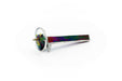 The tumbling glass shards and beads create an array of beautiful color combinations within the scope. Every scope is unique, no two are exactly alike and with every turn of the wheel, a new and unique color pattern will develope. Prepare to be dazzled by the brilliant shades of color that will dance before your eyes. Iridescent purple/green stained glass body.