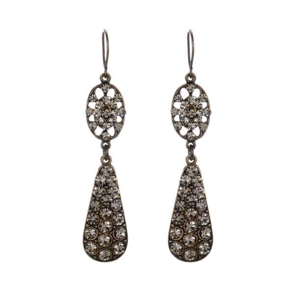 Antiqued Brass studded with black diamond Swarovski Crystals catch the light with every movement. Turn their heads when you turn yours!