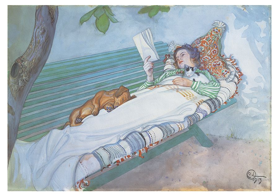 Woman Reclining on a Bench by Carl Olof Larsson