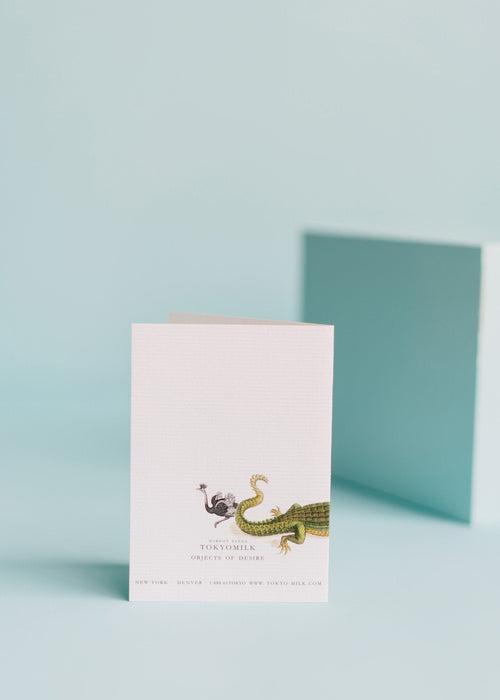Laid paper frosted with hand-glittered accents. As much a treat to give as it is to receive. Card is blank inside. Saying on front: "party animal"3.5" W x 5" H