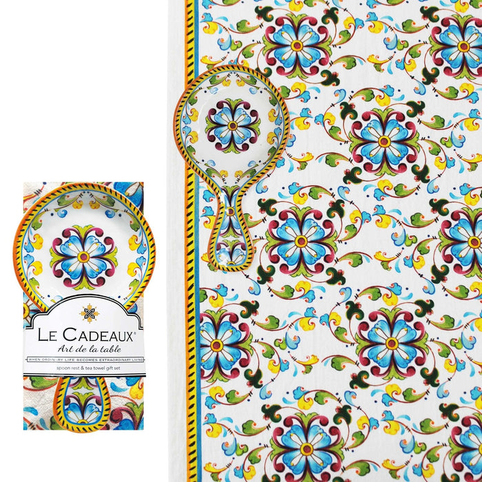 Toscana Spoon Rest with matching Tea Towel Gift Set by Le Cadeaux
